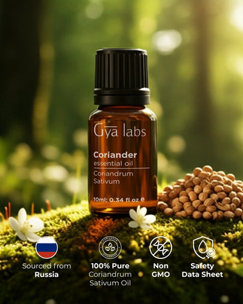 Coriander oil has Vitamin C which is known for its skin-brightening qualities. Products containing coriander essential oil may be helpful if your skin appears dull. Coriander oil can be administered topically when mixed with a carrier oil, like jojoba or olive.