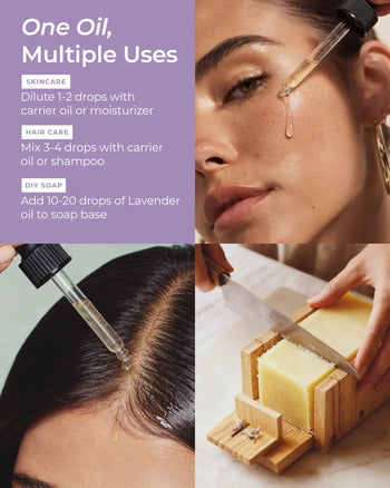 Lavender Essential Oil has soothing properties that are great for managing sensitive and acne-prone skin as it clears breakouts while keeping dry skin moisturized.