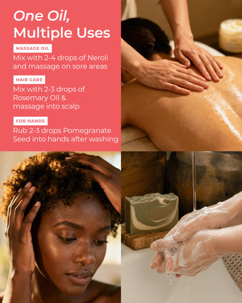 Our Organic Pomegranate Seed Oil can be applied directly onto the skin as a moisturizer or used as a carrier oil for other more potent facial oils. The most popular way to use this oil is by applying it directly on skin or adding it to your favorite moisturizer.