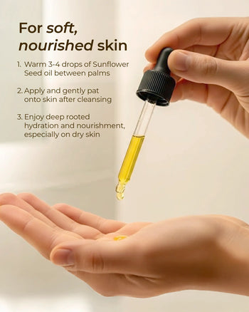 Yes! Sunflower seed carrier oil is excellent for nourishing and strengthening hair. Rich in vitamin E, omega fatty acids, and antioxidants, it helps moisturize the scalp, reduce dryness, and promote healthy hair growth. It also acts as a natural conditioner, leaving hair soft, shiny, and manageable. To use, warm a few drops in your hands and massage into the scalp or apply to the ends of your hair for hydration and frizz control.