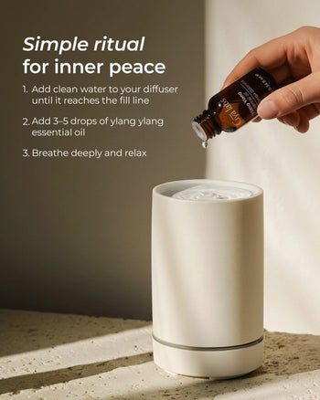 Ylang Ylang essential oil has a sweet, floral aroma that has been shown to help calm the mind and body, reduce feelings of stress, and uplift the mood. When diffused or used in aromatherapy, it can lower heart rate and blood pressure, making it effective for alleviating anxiety, restlessness, and emotional tension. Its soothing scent is often used in massages and baths to enhance relaxation.