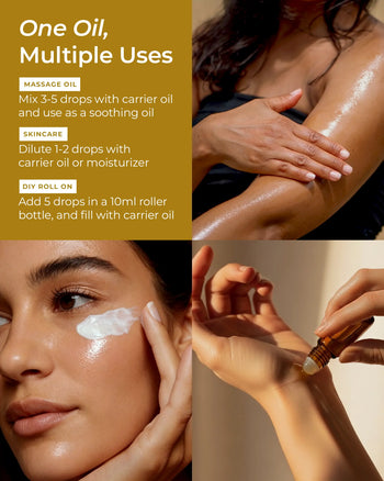 Dilute about 1-2 drops of essential oils for every tablespoon of our skin-friendly carrier oils, massage into hair for full-volumed tresses.